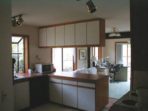 features a modern kitchen, with service for ten, open living areas, a large deck, in a private wooded setting. The main